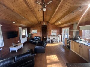 This cabin is pet friendly allowing you to have up to 3pets. The lounge is plenty big enough for your pets. (disposable BBQ’s to be used only) unless BBQ Cleaning has been paid for.
